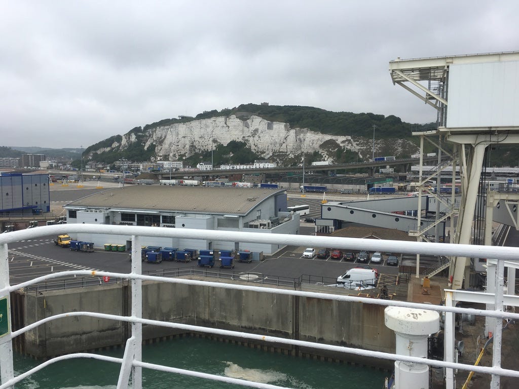 Walked off the ferry with two Brits - one who looked like an ageing pop star dressed as a teenager while the other in an awkward suit dressed like his own father. Both were about the same age, both angry in their different ways. Old formal man muttering with fury like a simmering kettle about being late, he’ll never take the ferry again, terrible inconvenience, he’ll never find where he’s supposed to be, terrible time, how dare the ferry hold him up like this, storming off in the wrong direction, getting lost. The teen/old man skinny with obvious back pain angry in a sad way, talking about it being about time Brexit happened, wouldn’t put it past Europe to want to punish Britain for trying to do the right thing to protect their borders, no, he didn’t want any help, he’d manage and where’s that old fellow gone? He should be with us? Teen/old asked if I knew where I was going. Well, clearly not. He pointed me in the right direction but the place was being refurbished and I walked across several lanes of busy traffic before I saw where I should have crossed.