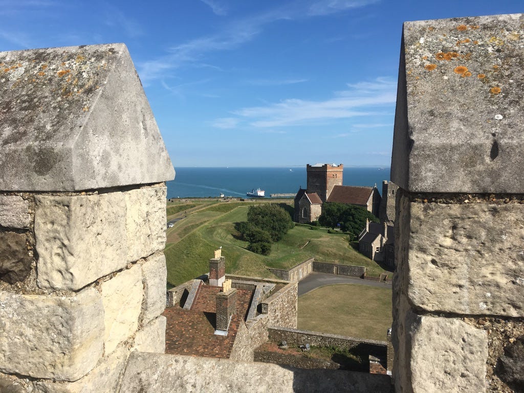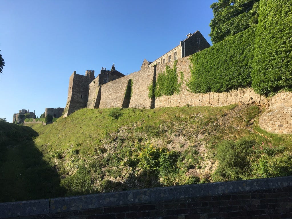 When I returned to Dover by train one month later, the sun was shining. I walked to my BnB with a bounce in my step and the local fair providing a energising steel-drumming beat. Sharon showed me to my comfortable attic and told me she’d cook me a vegan breakfast in the morning which really got my hopes up! Then I marched up the hill to see Dover Castle, an enormous spread of history, apparently planted in a neatly mown golf course.